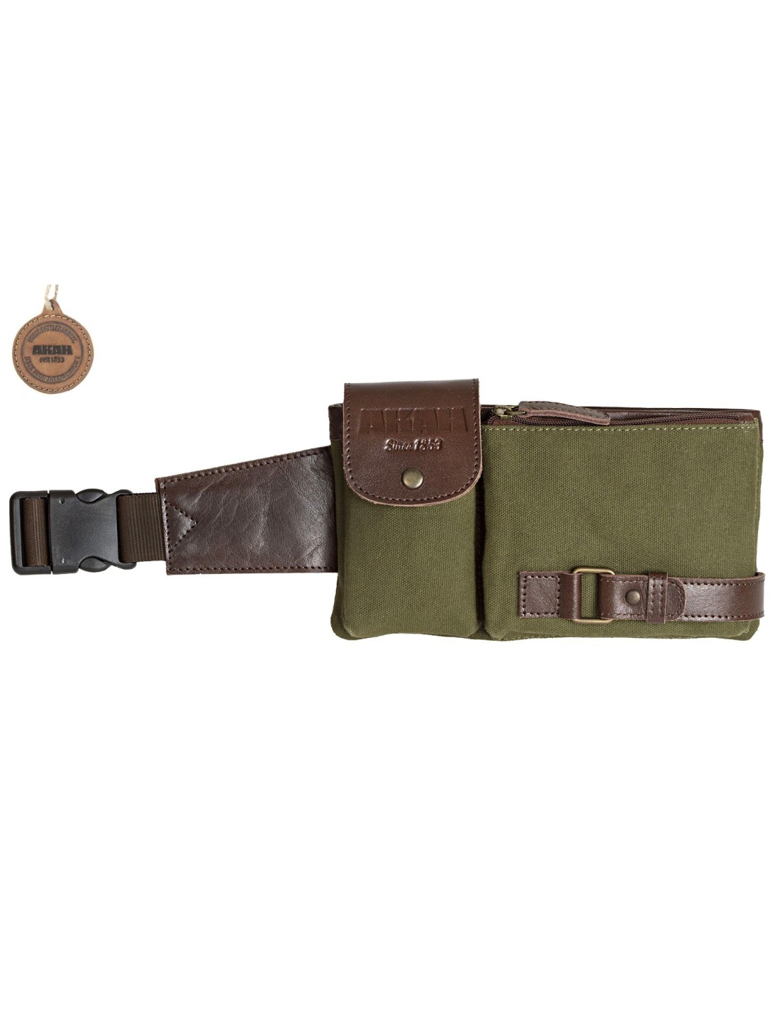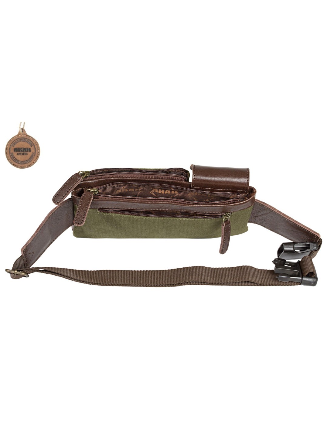 Ce sac banane de très bonne qualité, est fabriqué en cuir de buffle teint dans la masse et en canevas haut de gamme 100% coton. Le sac est imputrescible et résistant, il dispose de poches zippés intérieures et extérieures , d'une poche pour portable, et la ventrière est réglable.
