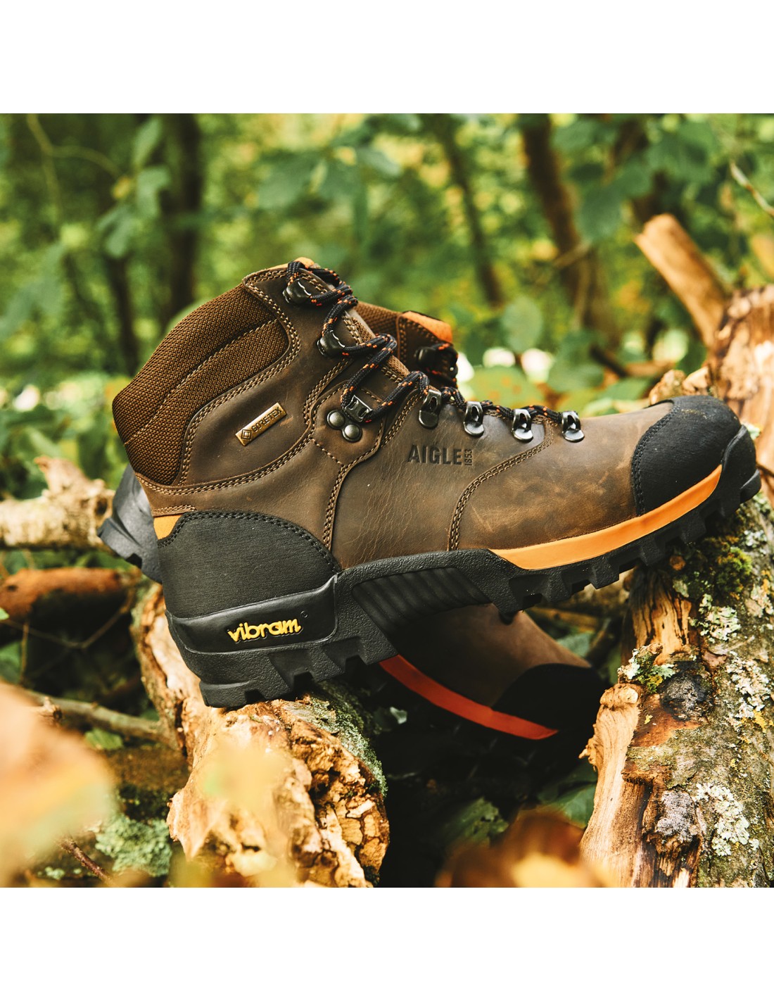 Les chaussures de la marque AIGLE sont réputés pour leurs qualités, et leurs durée de vie. Ce bottillon qui est fabriqué en cuir pleine fleur, et est également dotée d'une membrane MTD. Cette chaussure est imperméable et parfaitement respirante, elle sont évidement très robuste et néanmoins très confortable. Elle dispose de couture tout a fait imperméables, elles sont également dotées de semelles Vibram, cette technologie vous permet d'avoir toujours une parfaite assise au niveau de votre pied.