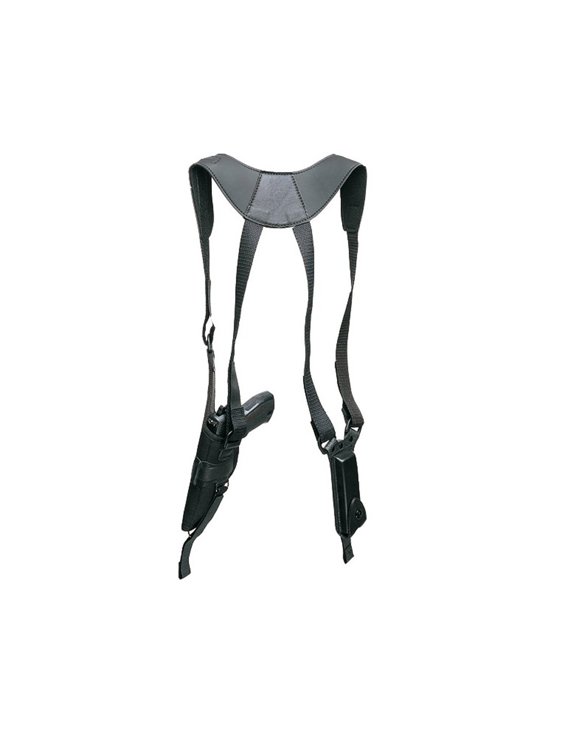 Modèle ambidextre en cordura extrêmement résistant et léger. Attaches hautes entièrement en cuir. L’arme est introduite dans son carquois en cordura renforcé pardes insertes en métal léger. Du côté opposé, on loge le chargeur dans son étui en cuir.