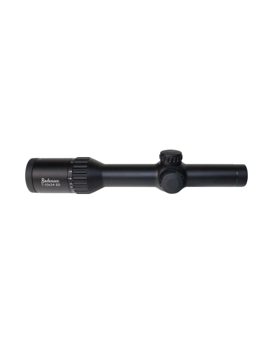 Les lunettes Bodensee en 1-10x24 ED disposent d'un réticule à fibre optique 4 avec point lumineux centré dans le second plan de l'image. Le réticule à fibre lumineuse est très fin et précis, il créer ainsi une couverture de cible extrêmement réduite. Le point lumineux est réglable sur 11 niveaux et est si clair qu'il est parfaitement adapté à la lumière du jour. Même au niveau d'éclairage le plus élevé, il n'y a pratiquement pas de lumière parasite. Les tourelles de réglages balistique ouverte en métal disposent d'un réglage de 1/10 MRAD et sont en outre équipées d'une fonction de remise à zéro, qui permet de remettre les tourelles au réglage initial après modification.