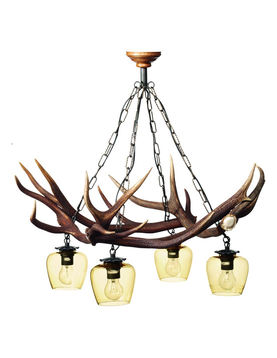 Lustre branches de cerf moyenne décors de chasse