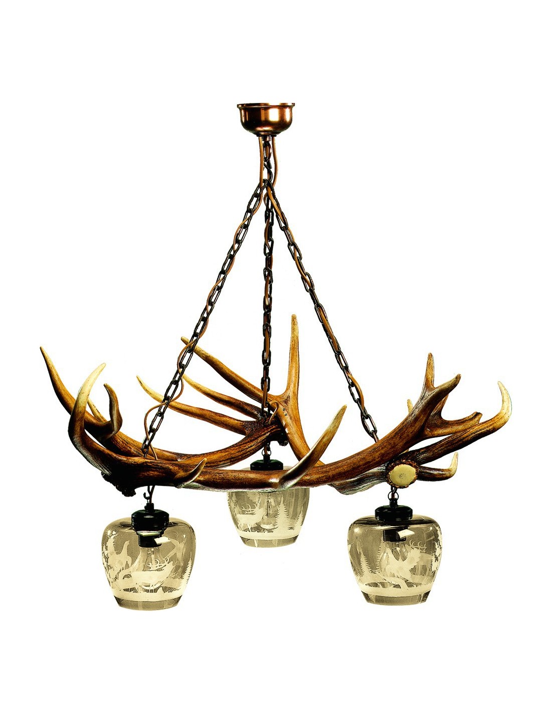 Lustre épaisses branches de cerf verres simples