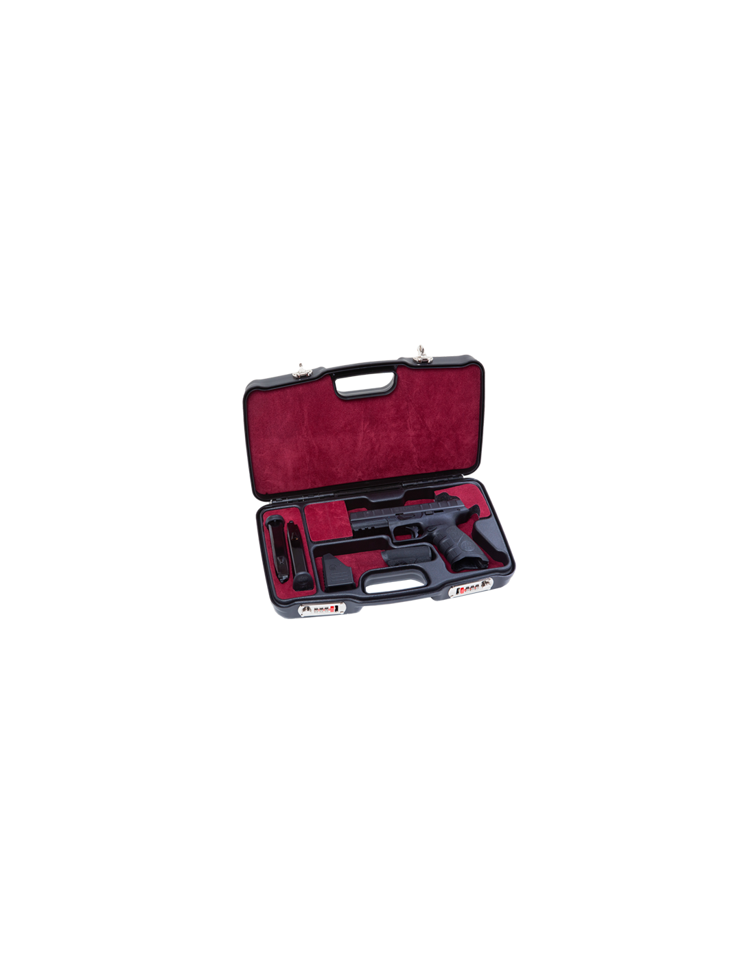 Mallette pour le transport des armes de poing en toute sécurités, la finition intérieure en velours assureras la protection de vos armes en toutes circonstances. La fermeture par 2 points a combinaisons assure la sécurité optimale.